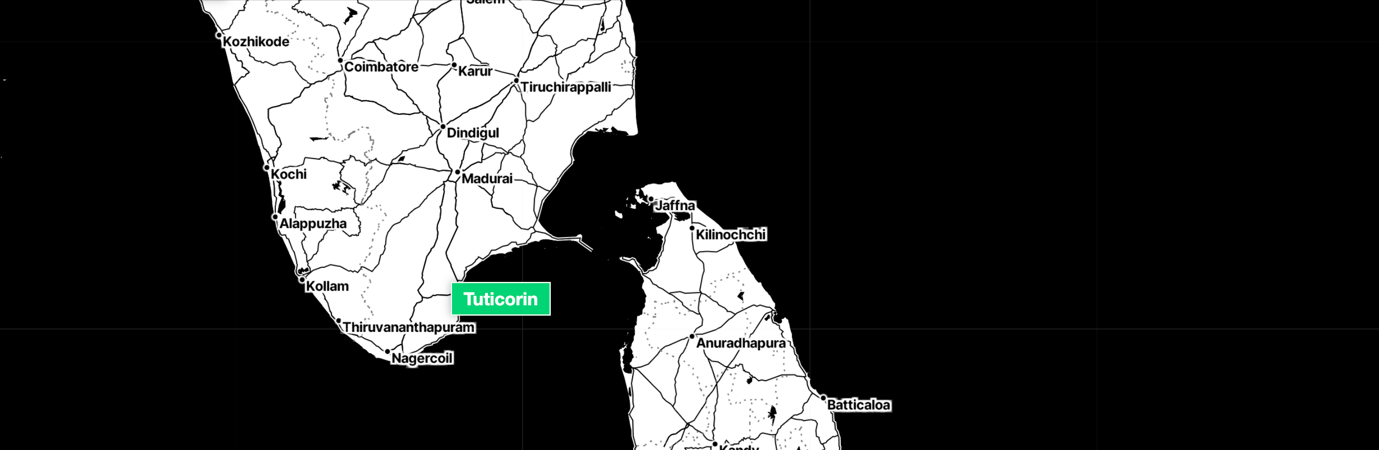 Tuticorin is situated on the international sea route connecting the East and West, making it a vital point for global trade. It is the southernmost port on India's east coast.